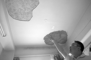 就在記者了解情況過程中,侯女士不斷出現(xiàn)惡心、嘔吐等癥狀!斑@房子也太不結(jié)實(shí)了,去年10月份臥室靠近窗戶的天棚就掉了一塊墻皮,好在家里沒人,后來我們自己用水泥抹了一下!碑(dāng)天,倪先生找到了負(fù)責(zé)小區(qū)開發(fā)的哈爾濱新陽開發(fā)公司,但等了3個(gè)多小時(shí)也沒見到相關(guān)負(fù)責(zé)人。