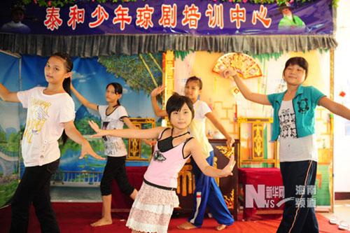 海南瓊海市退休教師王昱為傳承地方戲劇,用退休金義務(wù)創(chuàng)辦“泰和少年瓊劇培訓(xùn)中心”。他的義舉得到社會各界的支持和幫助,開班兩年多來有近百位孩子前來培訓(xùn)班學(xué)習(xí),學(xué)員當(dāng)中最大的15歲,最小的才4歲。參加培訓(xùn)的孩子常被邀請到各地演出,精彩的表演受到戲迷們的歡迎。培訓(xùn)班里的6名學(xué)員在一次全省瓊劇擂臺爭霸賽中,從1800名選手中脫穎而出,成功晉級50強(qiáng),其中兩人晉級8強(qiáng),10歲的符小玉憑借嫻熟的唱、念、做、打征服評委和觀眾,奪得大賽三等獎。(新華網(wǎng)/蒙鐘德 攝)
