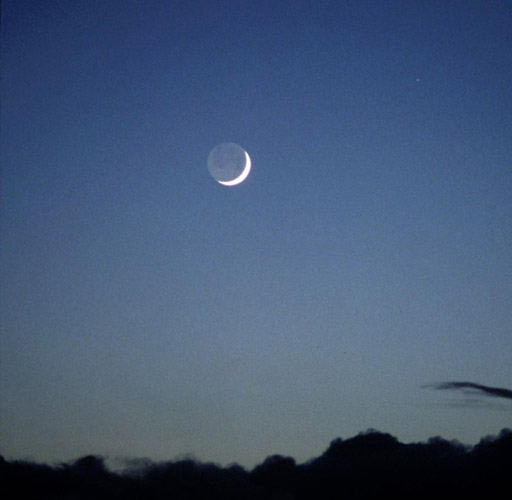 月球位于日、地之間時(shí)稱(chēng)之為“朔”,月球暗的半個(gè)球朝向地球,我們看不到它;朔之后的一、二天,鐮刀狀的新月從西方的天空中出現(xiàn),當(dāng)月球呈鐮刀狀出現(xiàn)在天邊的時(shí)候,我們能看到月球圓面的其余部分顯現(xiàn)微弱的光輝。這種光輝來(lái)自地球反射的太陽(yáng)光,稱(chēng)為“灰光”。地球能把入射陽(yáng)光的40%反射出去,比月球反射光線(xiàn)的“能力”高得多,從而可以照亮月球,產(chǎn)生“灰光”。