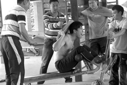 而劉翔的熱身也是慢跑和牽拉,這是他抵達(dá)廣州后的第一堂訓(xùn)練課,師傅孫海平安排的內(nèi)容是調(diào)整訓(xùn)練,練力量。幾組雙臂單舉后,劉翔已經(jīng)汗流浹背,于是他干脆脫下了上身的T恤。 “昨天在上海還很冷,現(xiàn)在已經(jīng)熱得我想喝冰水了。 ”接著,劉翔又仰臥在訓(xùn)練器材上,進(jìn)行負(fù)重式仰臥起坐,做了三組再換花樣。因?yàn)槠鞑牟豁樖,劉翔的手還磨破了,基地一位教練過來問好,順便關(guān)心劉翔現(xiàn)在的手推力量可以達(dá)到多少。 “120多公斤吧,現(xiàn)在也差不多!睂O海平答道。沒想到劉翔有意見了:“哪止啊,最高的時(shí)候可以到130公斤,師傅,你忘記了?其實(shí)啊,不一定是推得多就說明什么,關(guān)鍵是力量用得到就行了……”