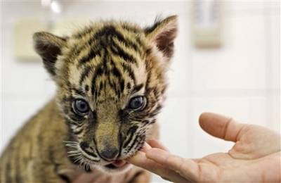 中新網(wǎng)2月26日電 以色列耶路撒冷動(dòng)物園里的一只蘇門答臘虎,兩個(gè)月前生了兩只小老虎,沒想到母老虎不但不管小老虎,還差點(diǎn)吃掉它們,最后只有一只小老虎成功活下來。動(dòng)物園獸醫(yī)無計(jì)可施,最后只好把小老虎帶回家養(yǎng),暫時(shí)充當(dāng)起虎保姆。