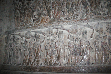 記者團(tuán)鞏義之行的第三站是北魏時期開建的廟宇——石窟寺。這里保存的十五幅帝后禮佛圖,構(gòu)圖嚴(yán)謹(jǐn),技法嫻熟,人物性格鮮明,是佛教藝苑中的珍品。