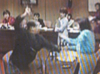 此時無黨籍“立委”羅福助與民進黨籍的李文忠恰好同時走向發(fā)言臺,羅福助忽然向李文忠出拳;國民黨的周五六、林明義、陳朝容和無黨籍的蔡豪也加入戰(zhàn)局,現(xiàn)場一片混亂。