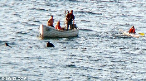 中新網(wǎng)6月4日電 據(jù)英國(guó)媒體報(bào)道,英國(guó)一群游客日前在康沃爾一處海上劃船時(shí),意外遭到數(shù)只巨大鯊魚(yú)包圍,所幸他們保持鎮(zhèn)定,鯊魚(yú)感到?jīng)]有威脅后,默默離他們遠(yuǎn)去。
