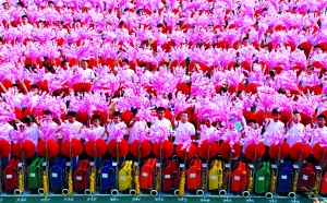 今年國(guó)慶廣場(chǎng)背景翻花表演中,有近900名學(xué)生來(lái)自北京四中。在這些演出主力軍中,還穿插著23名替補(bǔ)隊(duì)員。他們將為信號(hào)盲區(qū)傳遞信號(hào),同時(shí)頂替臨時(shí)缺席的學(xué)生。據(jù)了解,每個(gè)替補(bǔ)隊(duì)員要負(fù)責(zé)所轄區(qū)域內(nèi)的100人的情況。事實(shí)上,這些被稱作替補(bǔ)隊(duì)員的學(xué)生必須熟悉轄區(qū)內(nèi)每個(gè)隊(duì)員的翻花動(dòng)作,承擔(dān)著“精英隊(duì)員”的任務(wù)。