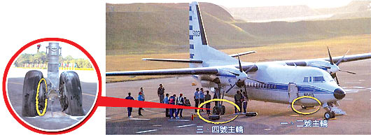馬英九坐前座未查覺,后座的鄭德美透過窗口發(fā)現(xiàn)異狀,立即向馬英九報告“飛機(jī)出狀況,請即刻下機(jī)”。地勤人員發(fā)現(xiàn)機(jī)輪著火,透過無線電告知機(jī)長,消防車也趕到撲滅火勢。