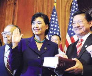 在洛杉磯地區(qū)政壇活躍了24年的趙美心(Judy Chu)2009年7月14日晚,在加州聯(lián)邦第32選區(qū)的特別選舉中勝出,當(dāng)選美國首位華裔女國會(huì)議員,締造了歷史。在國會(huì)參眾兩院五百多位議員中,趙美心是繼吳振偉之后的第二位華裔國會(huì)議員,也是美國建國兩百多年來首位華裔女聯(lián)邦議員。