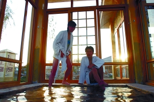 與溫都水城相比,天龍?jiān)绰赃h(yuǎn)一點(diǎn),但是豐富的娛樂(lè)項(xiàng)目仍吸引了不少度假客。這個(gè)大型溫泉娛樂(lè)宮不僅設(shè)有各種溫泉泡池、游泳池、水上樂(lè)園、康樂(lè)、按摩保健等常規(guī)項(xiàng)目,其最大賣點(diǎn)是水上歌舞表演。據(jù)介紹,目前這里正在上演的是由《千手觀音》總導(dǎo)演、北京奧運(yùn)會(huì)開(kāi)閉幕式副總導(dǎo)演、殘奧會(huì)開(kāi)閉幕式總導(dǎo)演張繼鋼執(zhí)導(dǎo)的《圣水觀音》。而躺在溫泉池子里的按摩椅上,透過(guò)碩大的玻璃幕墻欣賞窗外的風(fēng)景,也很是愜意。