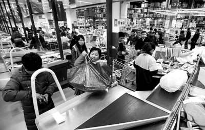 東西雖然便宜,可是付錢需要排上2個多小時的長隊,一些顧客見狀扔下購物袋走人。昨天,在進行10周年慶的宜家商場內,100多種商品參與打折,折扣最低至3折。據悉,顧客數較以往周三多一倍,營業(yè)額創(chuàng)下周三的新高。