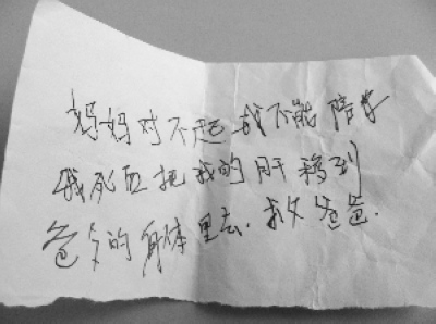 令崔女士怎么也沒有想到的是,1月24日中午12點半左右,當(dāng)她從醫(yī)院回到家,卻發(fā)現(xiàn)自家大門被反鎖了,“我只好從后院翻墻進去,看到女兒躺在床上一動不動,就像死了,旁邊有兩個安眠藥空瓶和一張遺書,上面寫著‘媽媽對不起,我不能陪你,我死后把我的肝移到爸爸的身體里去,救爸爸!贝夼款D時覺得天旋地轉(zhuǎn),“這兩瓶安眠藥有200粒!女兒是23日傍晚五點多在醫(yī)院吃過晚飯回家的,到我發(fā)現(xiàn)的時候,有十多個小時了!