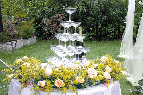 觀禮場旁邊,例牌要準備一些簡單的餐點供親友們享用。至于浪漫的泡泡機、現場演奏的小樂隊,就可以視乎新人們的需要來添加或者忽略。