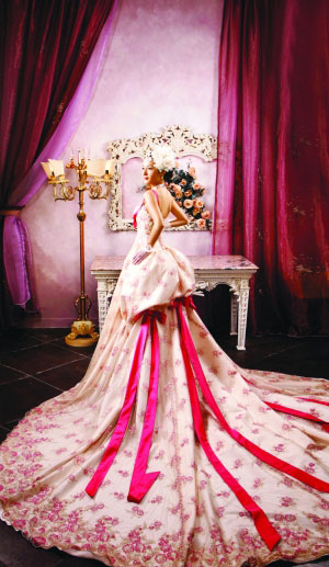 米蘭婚紗攝影的婚紗陳列區(qū)有上百件多彩炫目的婚紗、禮服,要從這么多件婚紗里選出幾件適合自己的,還真要有點耐心!米蘭負責(zé)人告訴記者,先要搞清自己適合穿哪種材質(zhì)婚紗。婚紗的材質(zhì)有很多種,比如全真絲高貴典雅;雪紡材質(zhì)清爽涼快;洋緞面高貴大方;蕾絲材質(zhì),是作為裝飾及點綴之用;塔府綢,輕身而滑溜,給人輕盈的感覺。如果你屬于可愛型,可以選擇蕾絲設(shè)計較多的款式;如果你的氣質(zhì)適合高貴典雅的風(fēng)格,就選擇洋緞面婚紗,因為它很“抬人”!