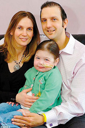 英國一女孩幼年患絕癥 父捐肝母捐腎救活(圖)
