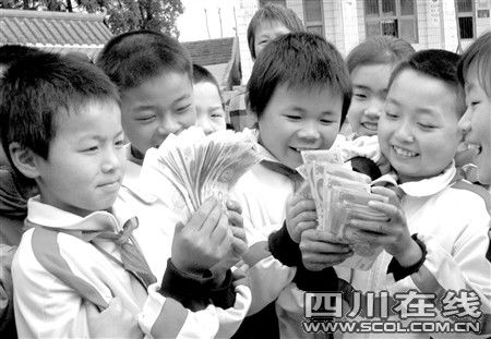這里距離學(xué)校還有1000多米,8人身負特殊使命,一路小跑!皥蟾胬蠋煟覀兘诲X來了!”教導(dǎo)主任易光勇正準備去上課,門口擁來的一群孩子送來一大堆現(xiàn)金,令他十分感動。在易光勇的幫助下,孩子們把錢分成幾組,大家分頭清點,然后統(tǒng)一統(tǒng)計,共有現(xiàn)金8900元。
