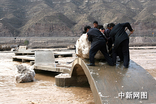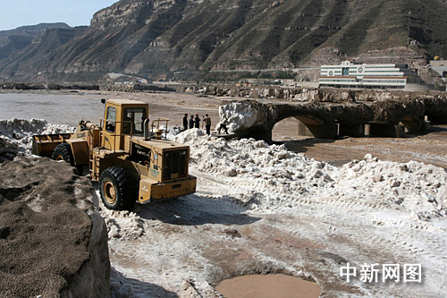 為早日使景區(qū)開放,在一年一度桃花訊來臨后,河道的冰塊被洪水沖刷的所剩無幾,加之天氣漸漸變暖,使景區(qū)道路冰塊融化,壺口管委會決定采取機(jī)械與人工清理冰塊的辦法,及時組織景區(qū)干部職工和景區(qū)群眾配合機(jī)械對冰塊進(jìn)行清理。