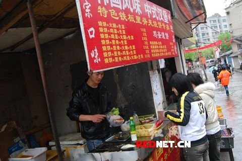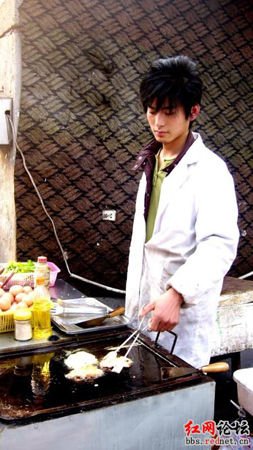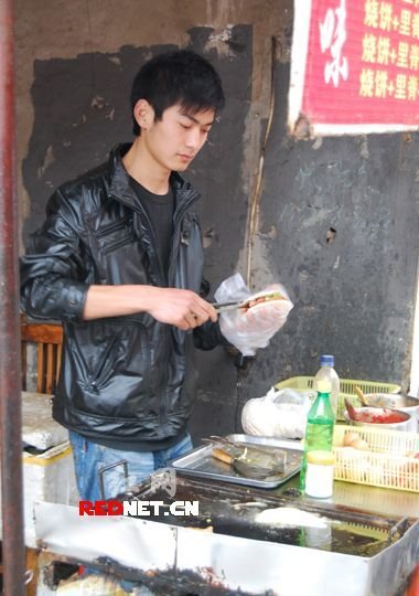 提到賣燒餅的,人們自然想起了身材短小、長(zhǎng)相寒磣的武大郎,不過(guò),長(zhǎng)沙的“墮落街”(即麓山商業(yè)文明街)上一位眉目清秀、年輕帥氣的小伙,卻在兩平米大小的店鋪賣燒餅,或許你還真難以想象,不少人揣測(cè)說(shuō)“人家可能是個(gè)富家子弟,做燒餅賣只是體驗(yàn)生活的”,當(dāng)然你也可能會(huì)由“豆腐西施”而想到“燒餅帥哥”。