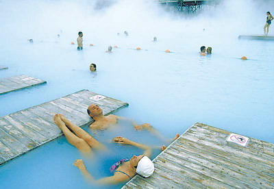 冰島人喜歡露天游泳,當(dāng)然是在溫泉里游。大多數(shù)冰島人出生沒幾個(gè)月,就被父母帶到溫泉學(xué)游泳。露天游泳池是冰島最熱門的社交場(chǎng)所。人們?cè)谶@里會(huì)碰到政客、企業(yè)家和藝術(shù)家等。人們脫去正裝只穿泳衣時(shí),沒有職業(yè)和身份的區(qū)別,還原了人的本色,所以無論談?wù)逻是聊天,每個(gè)人的心態(tài)都很放松,情感更容易溝通。在冰島,溫泉成了青年男女談戀愛的最佳場(chǎng)所,在露天溫泉池里談戀愛不但可以讓戀人們坦誠(chéng)相對(duì),而且那熱騰騰的溫泉水還可以為戀人們的感情加溫。記者的冰島朋友格魯克說,“冬天來冰島旅游,泡溫泉浴是一項(xiàng)必備的項(xiàng)目。” 格魯克介紹說,冰島溫泉浴不象芬蘭浴那樣冰火兩重天,即桑拿到“透熟”的狀態(tài)就一頭扎進(jìn)接近零度的冰水中,刺激太大,非常危險(xiǎn)。冰島溫泉浴主要是采取逐漸升高溫度進(jìn)入三個(gè)漸進(jìn)加熱的程序,這對(duì)皮膚和心血管都有保護(hù)作用。