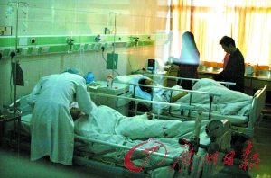 據(jù)太平人民醫(yī)院耳鼻咽喉——頭頸外科主任陳偉南介紹,陳某與張某兩人送到醫(yī)院時均處于貧血、休克狀態(tài)。8位醫(yī)務人員全力將他們搶救過來。兩人傷在喉嚨,傷口都有15厘米長,現(xiàn)在暫未脫離生命危險。(記者劉滿元攝影報道)