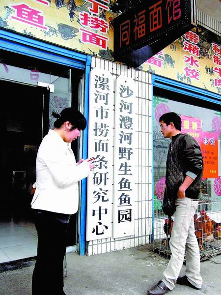 漯河市工商局一位工作人員告訴記者,這家“撈面條研究中心”并沒(méi)有注冊(cè),掛這樣的招牌不太妥當(dāng),需要整改。(劉廣超文圖)