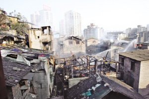 昨日下午6時許,火災(zāi)被成功控制;馂(zāi)造成七八棟民房坍塌,分散在11棟民房中的40租住戶無家可歸。昨晚7時許,當(dāng)?shù)亟值磊s到現(xiàn)場統(tǒng)計受災(zāi)情況,“實在困難的住戶,街道會考慮對其進(jìn)行安排!