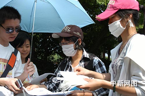 中新網(wǎng)杭州5月4日電(記者 江耘 通訊員 陳國利) “您好,這是我們印制的宣傳冊,介紹了日常生活中預(yù)防甲型H1N1的方法,我們還給您準(zhǔn)備了口罩。如果您覺得需要,就麻煩您戴上它!苯裉煜挛2點多,游客羅先生與夫人正在西湖邊散步,迎面碰上兩位帶著口罩的大學(xué)生。