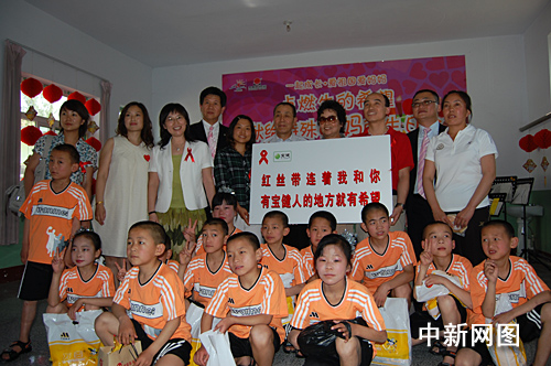 中新網(wǎng)6月3日電 5月30日,我國艾滋病宣傳大使、臨汾紅絲帶學(xué)校名譽(yù)校長、著名演員濮存昕和青年歌手李丹陽、中國青少年發(fā)展基金會(huì)副秘書長汪敏、寶健(中國)日用品有限公司副總裁蔡尚榮、寶健山西臨汾的代理商們等一行走進(jìn)山西臨汾“綠色港灣”,為紅絲帶小學(xué)的艾滋病患兒們送去了節(jié)日的禮物和溫馨的祝福。