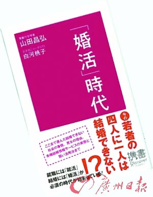 《“婚活”時(shí)代》由社會(huì)學(xué)家山田昌弘和記者白河桃子合著,去年初一上市即售出17萬冊(cè)。這兩名作者把日語“婚姻”和“活動(dòng)”兩詞合成“婚活”一詞,意為一切與結(jié)婚相關(guān)的活動(dòng)。他們鼓勵(lì)未婚青年主動(dòng)出擊,因?yàn)樽纫庵腥顺霈F(xiàn)遠(yuǎn)遠(yuǎn)不夠。