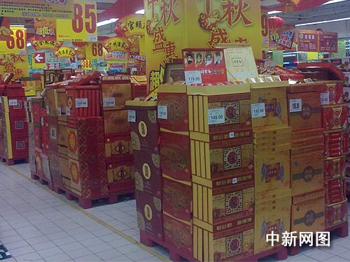 中新網(wǎng)9月14日電 中秋節(jié)臨近,各種月餅陸續(xù)登場。在北京各大商場、超市,月餅已被擺放在最顯目的位置,價格從幾十到幾百元不等。記者發(fā)現(xiàn),商家今年紛紛主打“親民牌”,以低價實惠為主,混搭健康元素。