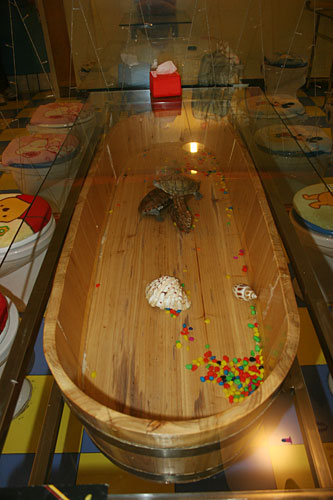 便便滿屋飯?zhí)糜幸晃幻琅习迥,每天都很開心的樣子。在談到為什么會開這么一家衛(wèi)浴主題的餐館時,店主李女士說:“原來看到國外有人做過類似的主題餐廳,我很喜歡,就開了一家。我們的餐具都是專門定制的,非常特殊,充滿童趣。現(xiàn)在我們的顧客大部分是10到35歲的年輕人,目的是讓他們能在這里解壓、釋放。”