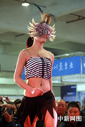 然鄭州室外地上還有厚厚的積雪沒有融化,但情趣內(nèi)衣展的T形臺上卻是活力四射。10多名女性情趣內(nèi)衣模特在人們的歡呼聲中閃亮登場。模特們身著各式生趣內(nèi)衣登臺,閃亮燈光下,大膽地秀出迷人的內(nèi)衣和輕紗隱藏下的曼妙身材。