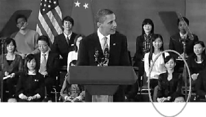不久前,奧巴馬剛剛結(jié)束訪華,此行不僅讓奧巴馬成為各大媒體關(guān)注的焦點,同時也使一位神秘女子成為網(wǎng)絡紅人。11月16日在上海科技館會場,出現(xiàn)在奧巴馬身后的一名黑衣女子被攝入媒體鏡頭中,其亮麗的外形、獨特的氣質(zhì)吸引了眾多網(wǎng)民的眼球,網(wǎng)友迅速展開對女孩的“人肉搜索”。范冰冰親戚?楊瀾侄女?或者又是一場炒作?種種未經(jīng)確定的猜測充斥著各大論壇,也為黑衣女孩的身份蒙上了一層神秘的面紗。