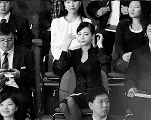 11月16日13時,對中國進行國事訪問的美國總統(tǒng)奧巴馬走進上海科技館會場,與中國青年展開對話。但是和奧巴馬的演講相比,現(xiàn)場攝影記者對一名黑衣女子表現(xiàn)出了更大的興趣。這名美女在現(xiàn)場脫掉紅色外套露出黑色套裝的全過程被記者用相機記錄下來,被制作成GIF動畫上傳網(wǎng)絡,隨后這組動畫在網(wǎng)上論壇以及QQ群里廣泛傳播,隨后又有網(wǎng)友將奧巴馬演講視頻中有關(guān)該女子的片段截圖上傳,黑衣美女的美貌和氣質(zhì)迅速傾倒眾人。