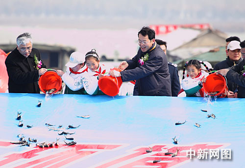 中新網(wǎng)宿遷3月10日電 (蔡云海 周翔 朱曉穎)9日,江蘇宿遷在洋河灘漁港啟動首屆駱馬湖放魚節(jié)儀式、放魚節(jié)歷時3天!敖K省駱馬湖漁政搜救中心”、“江蘇省駱馬湖漁業(yè)濕地管護(hù)站”同時揭牌。