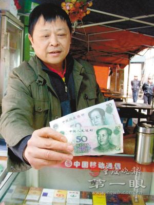 現(xiàn)在有假鈔替代真鈔的,但你見過用冥幣來冒充人民幣的嗎?昨日,渝中區(qū)響水橋6號(hào)煙攤老板王國(guó)華就遇到了這件事,“經(jīng)常收錢,一摸就認(rèn)出來了,但冥幣做成人民幣的樣子,面值小的,不注意還真容易弄混。”王國(guó)華說。