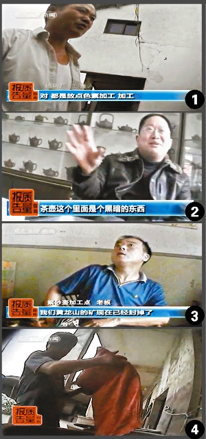 據(jù)央視每周質(zhì)量報告報道,由于政府實施了“禁礦令”,宜興原礦紫砂越來越少,于是一些煉泥廠開始摻雜使假,大量使用浙江、安徽等外地礦料或者普通陶土,通過添加化工原料或陶瓷色料進行調(diào)色,加工生產(chǎn)所謂的原礦紫砂泥。宜興一家紫砂壺加工點的老板承認(rèn),黃龍山的礦早已封掉,他們用的泥巴有的來自浙江有的是來自安徽。