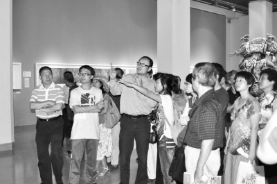曾經(jīng)留學(xué)德國(guó)的朱青生希望能推廣當(dāng)代藝術(shù)。報(bào)告會(huì)結(jié)束后,他與聽(tīng)眾們一起參觀“建構(gòu)之維——2010年中國(guó)當(dāng)代藝術(shù)邀請(qǐng)展”,“欣賞作品時(shí)要做自己的主人,而不能做畫(huà)家的奴隸!敝旖淌谝幻嬷v述自己對(duì)展覽作品的理解,一面鼓勵(lì)參觀者發(fā)揮自己的想象力,賦予作品不一樣的意義。
