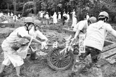 7月底的四川悶熱得很,幾乎每天的氣溫都在37攝氏度左右,即使是什么都不干,都會出汗。再加上為了避免曬傷,隊員們都穿著長袖上衣和長褲工作,更是熱得大汗淋漓。后來,趕上3天都在下雨,為了不延誤工期,大家就穿著雨衣堅持工作。志愿者們的想法很簡單:“因為我們不是工人,是志愿者,所以才要在雨天繼續(xù)工作,抓緊時間完成任務(wù)。我們想為在冬天來臨之前,讓更多的災(zāi)民搬出簡易房,住進(jìn)新房子盡一份力!”