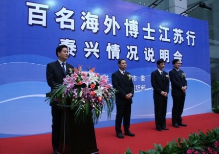 14日,江蘇省泰興市又一次迎來了“百名海外博士江蘇行”活動(dòng)的海外博士們。中共泰興市委、市政府對(duì)遠(yuǎn)道而來的海外博士們表示熱烈歡迎和誠(chéng)摯的感謝。江蘇省人力資源和社會(huì)保障廳副廳長(zhǎng)陳勵(lì)陽,中共泰興市委書記、市人大常委會(huì)主任張兆江,中共泰興市委副書記、市長(zhǎng)高亞梓等領(lǐng)導(dǎo)出席了此次泰興說明會(huì)和項(xiàng)目洽談會(huì)。