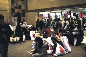 就讀紐約州立大學(xué)的劉同學(xué)和十多個(gè)友人從感恩節(jié)中午就抵達(dá)購物中心停車場(chǎng),帶著椅子、毯子,還有撲克牌、iPod等各種消遣物品。他們看中的是戴爾手提電腦,當(dāng)天的BEST BUY價(jià)格要比平時(shí)便宜400多元,他們每人都打算買一臺(tái)。