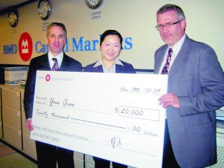 中新網(wǎng)1月15日電 據(jù)加拿大《明報》報道,加拿大滿地可銀行(BMO)一年一度的“資本市場高級研究獎學金”已于日前公布了評選結(jié)果,約克大學數(shù)學和統(tǒng)計學博士生,中國留學生喬云(Yun Qiao)憑借其博士論文贏得此項殊榮,獲得由該銀行頒發(fā)的2萬元獎學金。