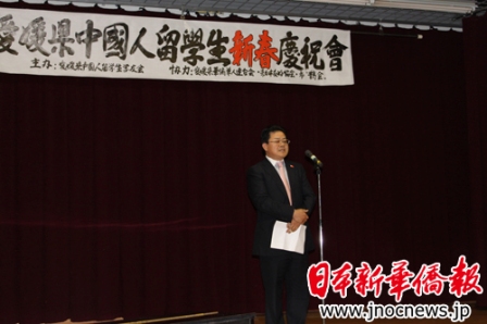 在愛媛大學(xué)和松山大學(xué)的大學(xué)學(xué)習(xí)的中國留學(xué)生和他們的家屬、愛媛縣華僑華人聯(lián)合會部分會員以及愛媛縣日中友好協(xié)會、松山市鵲會的日本友人共百余人參加了慶祝會。
