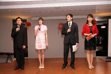 使館教育處王魯新參贊首先給到場的各位嘉賓和所有觀眾拜年并送出虎年的美好祝愿,并回顧了中國在過去一年金融危機(jī)時(shí)期經(jīng)濟(jì)持續(xù)發(fā)展的良好勢頭和在國際舞臺(tái)上的重要地位,同時(shí)展望了祖國更美好的2010年,即興用英語做了發(fā)言,在熱烈掌聲后開始了文藝演出。