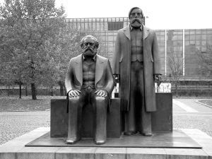 馬恩銅像雕塑,始建于上世紀(jì)七十年代的東德時期。據(jù)說,關(guān)于馬克思坐著而恩格斯站著的造型構(gòu)思,有兩種解釋,一是馬克思是德國人而恩格斯不是德國人,二是恩格斯是馬克思的戰(zhàn)友和學(xué)生。