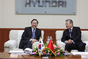 中新網(wǎng)4月13日電 據(jù)外交部網(wǎng)站消息,2010年4月9日,應(yīng)現(xiàn)代起亞自動車集團(tuán)邀請,張鑫森大使率領(lǐng)由中國駐韓國大使館館員、在韓留學(xué)生等200余人組成的“中韓友好產(chǎn)業(yè)考察團(tuán)”訪問了位于忠清南道牙山市的現(xiàn)代汽車牙山工廠。韓國國務(wù)總理室吳鈞局長、知識經(jīng)濟(jì)部、教育科技部、外交通商部等部門官員出席了有關(guān)活動。