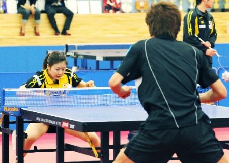 中新網5月7日電 據日本新華僑報網報道,為獲得即將在俄羅斯莫斯科即將開幕的第50屆世界乒乓球錦標賽參賽權,5月6日,日本選手在東京味之素國家訓練中心,舉行了模擬假想敵的公開訓練。其中,能說一口流利的漢語,深受中日人民喜愛的日本乒乓名將福原愛,則視羅馬尼亞一號主力丹妮拉·多德安為預選賽階段最大的對手。為此,她選擇了一名男陪練,專門模仿丹妮拉·多德安的打法。身高170cm的丹妮拉·多德安擅長削球,過去曾在比賽中與身高僅有156cm的福田愛交過手,福田愛的成績是3勝兩敗。