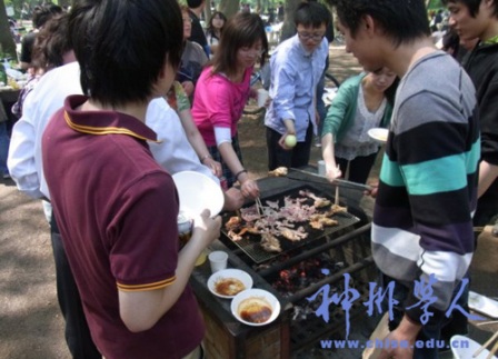 經(jīng)過大約半個(gè)小時(shí)的徒步行進(jìn)撿垃圾,大家順利到達(dá)燒烤大會(huì)會(huì)場(chǎng)(秋ヶ瀬公園)。大家臉上洋溢著笑容,因?yàn)榇蠹蚁嗷f(xié)助,在異國(guó)他鄉(xiāng)的日本,通過這一小小的行動(dòng),得到了當(dāng)?shù)厝毡九笥褌兊姆Q贊和支持。同時(shí),為達(dá)到大學(xué)間留學(xué)生的交流和讓大家感受集體溫暖與歡樂的目的,上武大學(xué)、東京國(guó)際大學(xué)、理化學(xué)研究所的部分中國(guó)留學(xué)生及工作人員也積極響應(yīng)參加了活動(dòng)。上武大學(xué)中國(guó)留學(xué)生學(xué)友會(huì)會(huì)長(zhǎng)繆逸峰,東京國(guó)際大學(xué)中國(guó)留學(xué)生學(xué)友會(huì)副會(huì)長(zhǎng)沈捷,理化學(xué)研究所中國(guó)人聯(lián)合會(huì)的外聯(lián)部長(zhǎng)安素峰也表示通過小小的行動(dòng),提高了大家的意識(shí)。