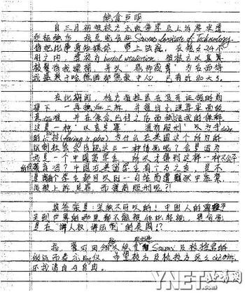 海明律師給本報(bào)傳來(lái)了翟田田親筆寫的聲明掃描件。翟在信中說(shuō), 檢方指控官在沒(méi)有證據(jù)的前提下,拒絕他上訴,還提出無(wú)理要求故意刁難,在保金已付的情況下仍拒絕他的保釋,稱這是一種“以言定罪”、“提前服刑”的逼供手段。