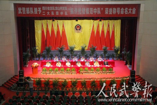 日前,武警部隊授予武警四川總隊涼山支隊四中隊“抗洪搶險模范中隊”榮譽稱號命名大會在總隊禮堂隆重舉行。