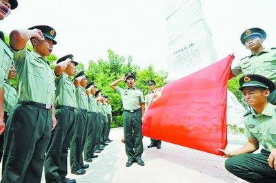 為紀(jì)念中國人民抗日戰(zhàn)爭勝利69周年,昨日,廈門警備區(qū)某偵察大隊(duì)組織官兵來到日寇侵犯廈門登陸遺址,開展“銘記抗戰(zhàn)歷史,擔(dān)當(dāng)強(qiáng)軍使命”活動。官兵們回顧歷史,悼念在抗戰(zhàn)中犧牲的革命先烈,并舉行入黨宣誓。(本報記者 李曉平 通訊員 吳振洲 攝影報道)