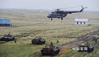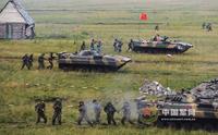 8月8日中午,在俄羅斯車?yán)镅刨e斯克的切巴爾庫(kù)爾訓(xùn)練場(chǎng)的實(shí)兵演練場(chǎng)地,“和平使命-2013”中俄聯(lián)合反恐軍事演習(xí)首次合練在風(fēng)雨中按計(jì)劃進(jìn)行。